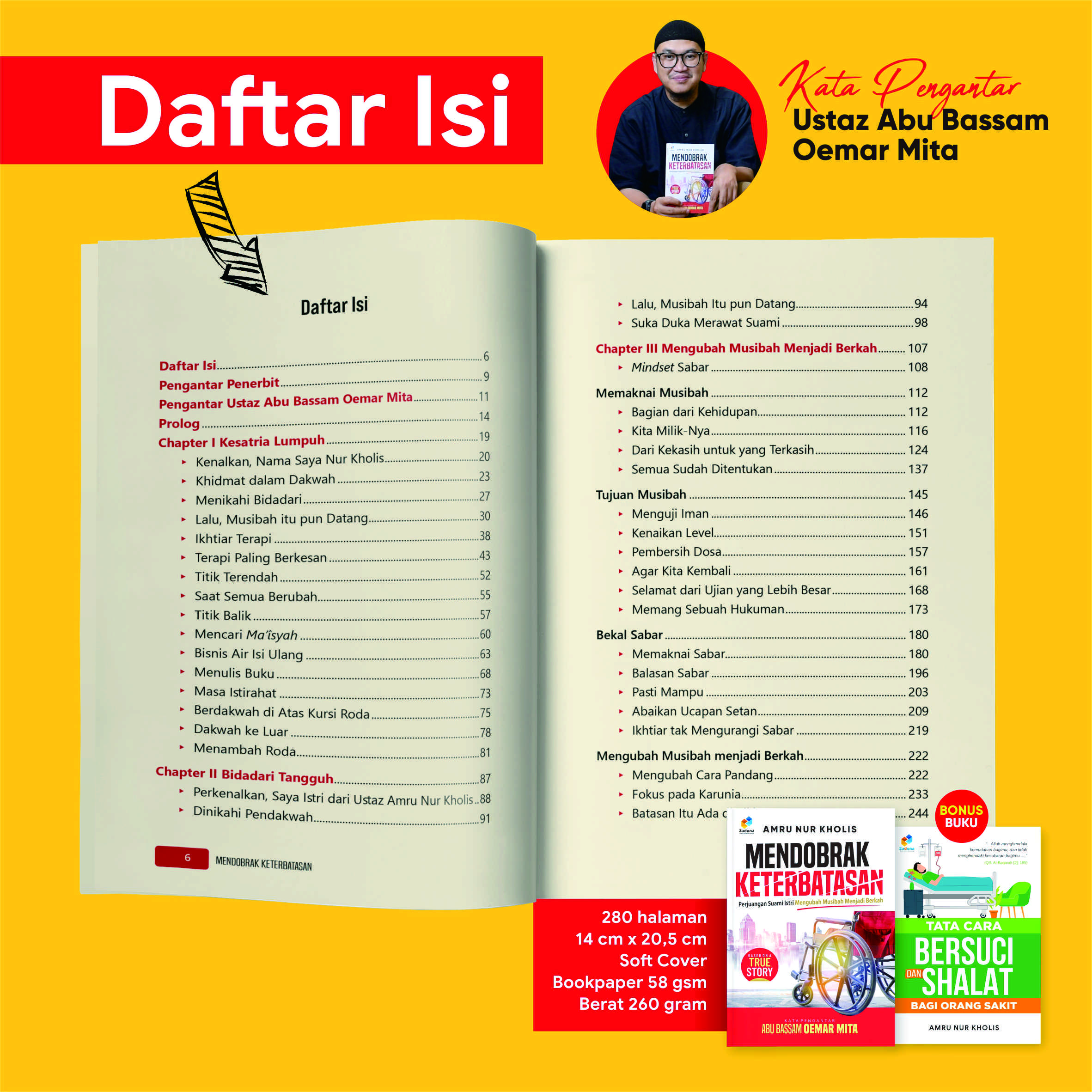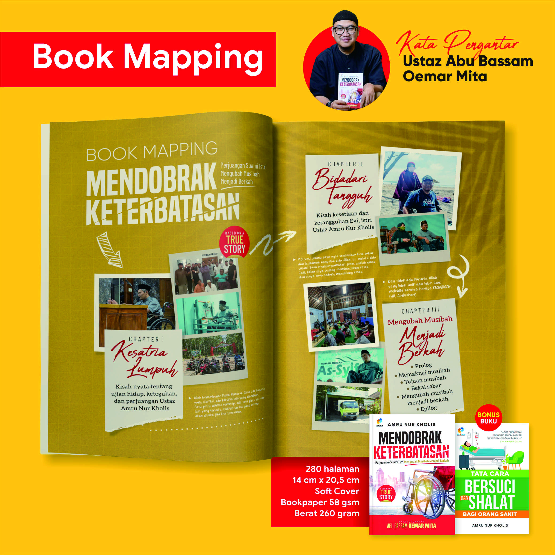 Bagaimana penulis bisa bangkit secara mental? Bagaimana penulis membangun kembali kepercayaan bahwa keterbatasan bukan alasan untuk berhenti berkarya; menulis, berbisnis, berdakwah, melakukan amal sosial, dan tetap bisa bergaul dengan lingkungan yang luas? Semua dikisahkan dalam buku ini.