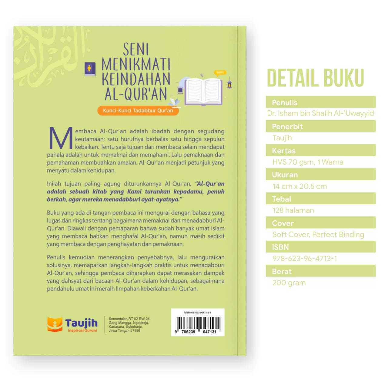 Seni Menikmati keindahan Alquran; Kunci-kunci Tadabbur Quran - Dr Isham bin Shalih Al-'Uwayyid - Buku Renungan - Soft Cover - Taujih - Edisi Reguler Al Quran